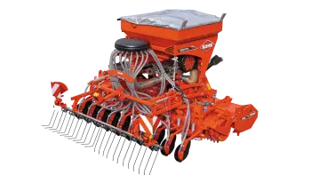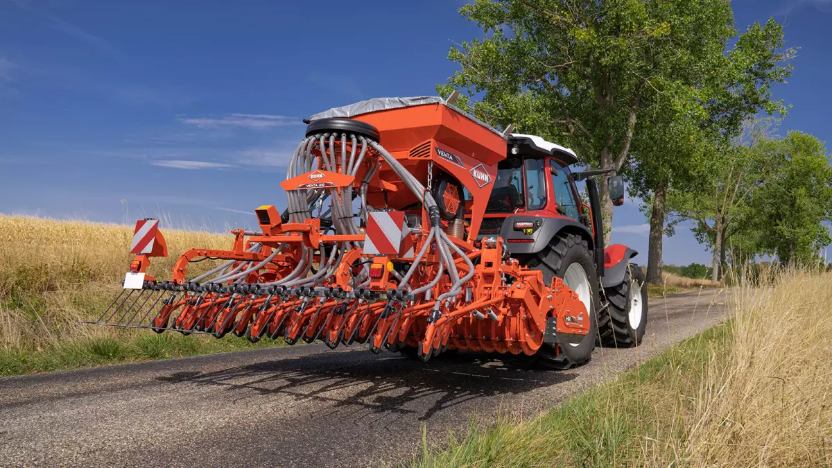 The seed drill is directly attached to the frame of the power harrow. Its centre of gravity is thus closer to the tractor, which allows good machine manoeuvrability in the fields and on the road, as well as excellent visibility of the seeding units. The power needed to raise the seed drill combination has also been reduced.