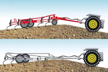 The exclusive KUHN floating hitch system precisely gauges tillage depth for rolling terrain resulting in fast, even emergence. Uniform tillage depth creates consistent soil moisture in the seed zone allowing seeds to draw moisture from the surrounding soil at the same rate. This enhances even seedling emergence, which is critical for maximizing yield potential. Conventional hitch designs do not contour to rolling terrain, gouging deeper on hilltops and running too shallow in valleys. This can cause uneven emergence and immediately affects final yield potential.