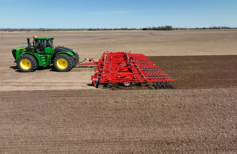 The exclusive KUHN floating hitch system precisely gauges tillage depth for rolling terrain resulting in fast, even emergence. Uniform tillage depth creates consistent soil moisture in the seed zone allowing seeds to draw moisture from the surrounding soil at the same rate. This enhances even seedling emergence, which is critical for maximizing yield potential. Conventional hitch designs do not contour to rolling terrain, gouging deeper on hilltops and running too shallow in valleys. This can cause uneven emergence and immediately affects final yield potential.