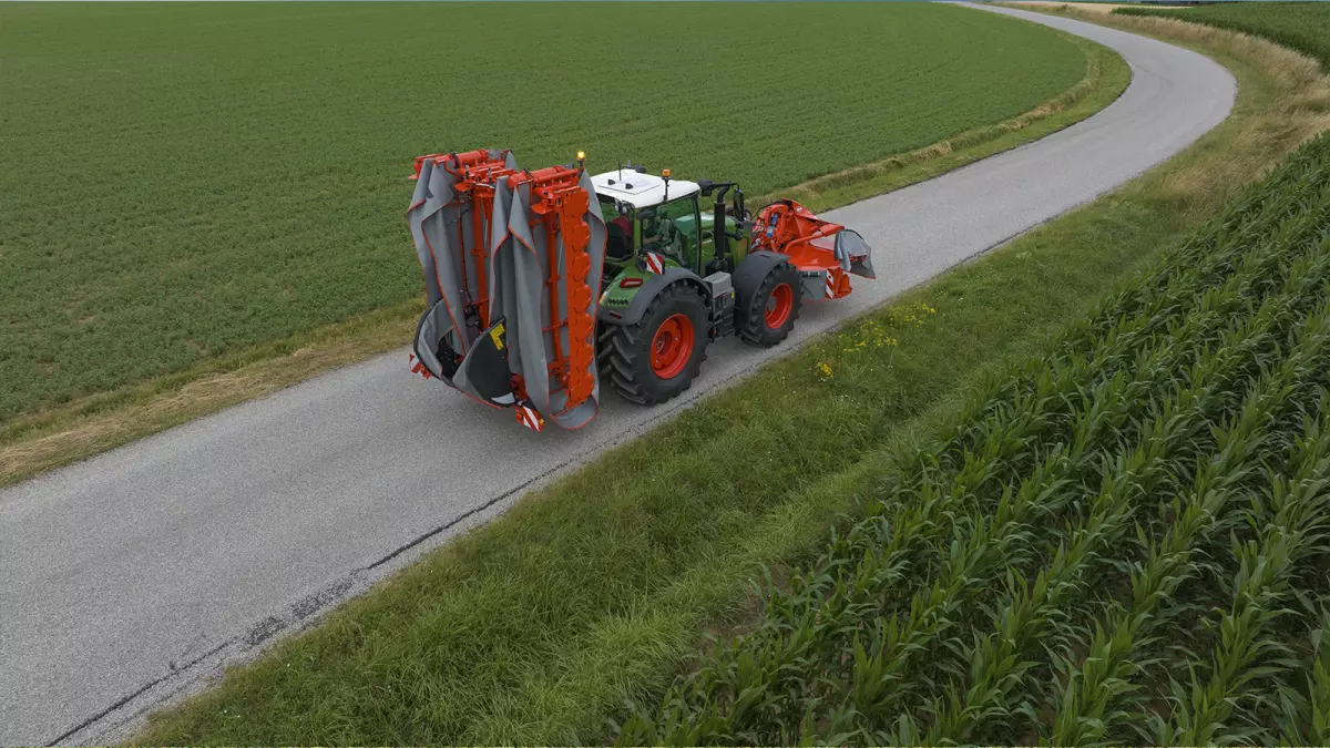 In combination with a 3.10 or 3.50 metre front mower, the overlap width varies from 46 cm (GMD 3125 F) to 66 cm (GMD 3525 F), providing a clean cut on slopes and on bends.