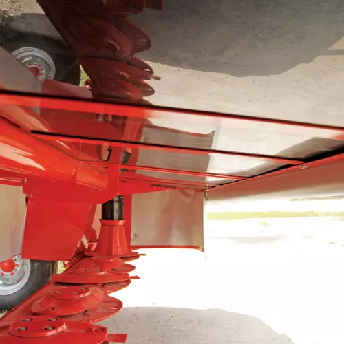 Forage quality and nutritional value are preserved by the 4-spring suspension system. The kinetics of the mower unit's articulations ensure perfect ground following. The extra-large wheels (400/60-15.5) are designed not to run over the forage. They also exert less pressure on the ground which protects the sward and improves regrowth.