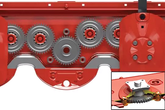 The Optidisc® Elite cutterbar provides a flat, streamlined profile so that soil and crop residue do not accumulate and material flows smoothly, even in heavy, difficult crop conditions. Optidisc Elite cutterbars are designed and tested with a zero oil change interval. The highly-polished gears and synthetic gear oil ensure that this system does not require any regular internal maintenance, eliminating the need for cutterbar oil changes throughout the life of the machine.