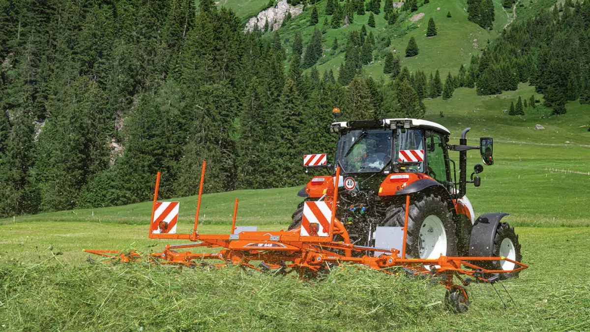 Equipped with four rotors and six tine arms, GF 502 tedders are the ideal tools for spreading large swaths.
