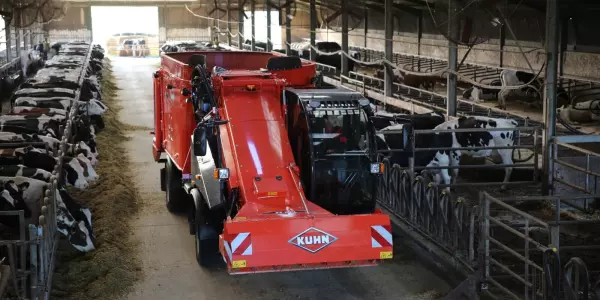 SPW INTENSE self-propelled mixers with 2 vertical augers in front cross-conveyor distribution. Available in 14 to 27 m3 formats, for herds consisting of 75 to 215 cattle.
