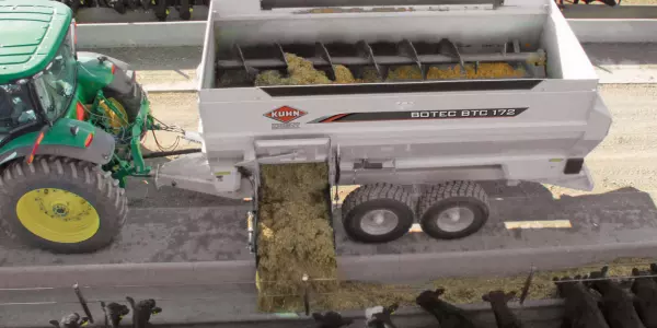 KUHN 4100 Series 4-auger mixers are designed for small- to mid-sized cattle operations with features to provide reliable, efficient and affordable mixing. These mixers offer capacities from 10.2 to 13.6 m³, and are available in trailer and truck configurations.