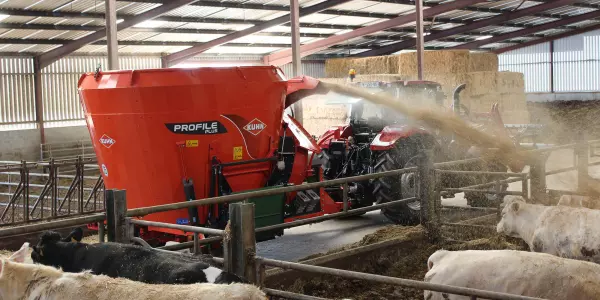 The PROFILE PLUS 1 DL mixers have 1 vertical auger, a straw-blowing turbine, a large hopper and feed out via direct side doors. Available in 12 to 15 m3 capacities, these machines are suited to herds of between 60 and 110 cattle.