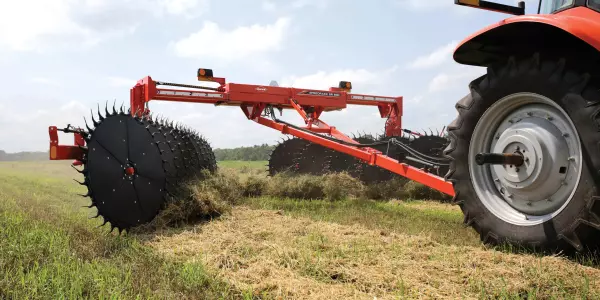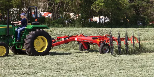 Disponible en configuraciones de 12, 14 y 16 ruedas, los soles hileradores SpeedRake® de la serie SR 600 GII cuentan con anchuras operativas que van de 7.62 a 9.44 m (25’ a 31’).