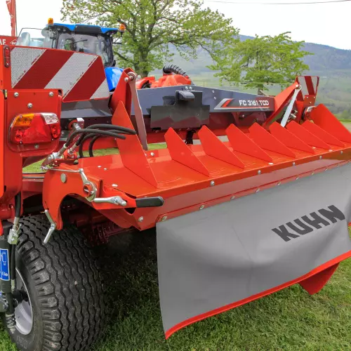 El acondicionador con mayales de acero ofrece un alto rendimiento con forrajes pesados, largos o maduros, así como con forrajes cortos. Se caracteriza por su capacidad de paso del forraje y facilitar su tránsito por los órganos de la máquina. La potencia requerida por este tipo de acondicionador es baja ya que el forraje pasa rápidamente y no vuelve a circular a través de la máquina. Se crean unas hileras bien formadas y aireadas gracias a la posición de los mayales de acero, que esponjan el forraje y lo lanzan al aire antes de que baje para formar la hilera. Este forraje, ventilado de manera óptima, será así más rico en energía y en nutrientes gracias a un secado acelerado.