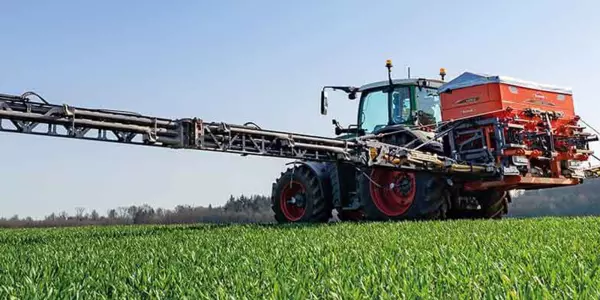 Doté d’une rampe avec 24 diffuseurs répartis sur une largeur de travail de 27, 28 ou 30 m, le distributeur d’engrais pneumatique AERO 32.1 épand avec précision la bonne dose au bon endroit. Libérez-vous des contraintes liées aux conditions climatiques et à la qualité balistique des engrais !