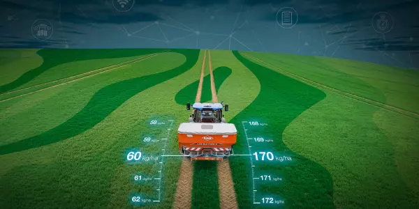 Le distributeur d'engrais ACCURA 1200 offre une solution simple et intégrée pour tous les types d'exploitations. l convient à des cultures spécifiques telles que les vignobles, les vergers et les légumes, ainsi qu'aux exploitations céréalières et aux champs de cultures fourragères.