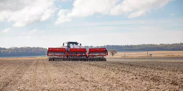 Avec une largeur de travail de 9 m, sans outil de travail du sol, avec un accessoire traîné et des roues de transport à l'arrière qui soutiennent le semoir pendant le travail : le semoir mécanique PREMIA 9000 TRC peut être tracté par des tracteurs de seulement 120 à 350 ch.