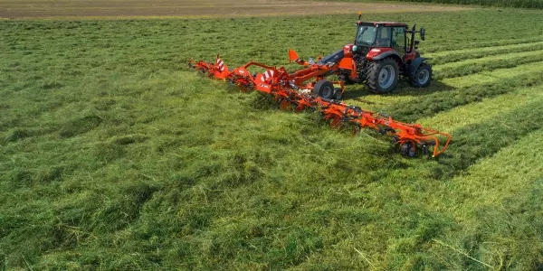 Le fanage est le maillon clé de la chaîne de récolte, car il accélère le séchage. L’objectif est simple, préserver la valeur énergétique du fourrage et limiter les risques liés à la météo. Les faneurs KUHN sont étudiés pour garantir la meilleure répartition du fourrage dans toutes les situations, et ainsi favoriser un séchage rapide et uniforme du fourrage. Avec une gamme de 4,20 m à 17,20 m de largeur de travail, il y a un faneur KUHN qui correspond à vos besoins.