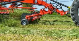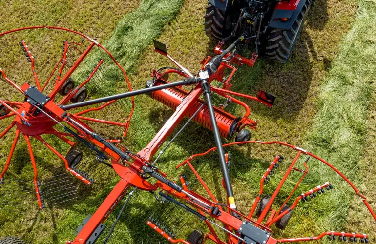 Les andaineurs double rotors GA 7631, GA 8131, GA 8131 CL, GA 8731+ et GA 9531+ délivrent des andains centraux. Les andains formés ont une largeur de 7,50 m à 9,30 m. Le modèle GA 8131 CL est équipé d'un pick-up élévateur, une exclusivité sur le marché!