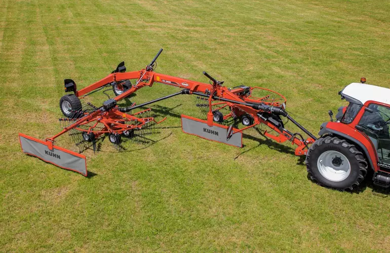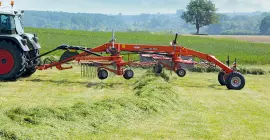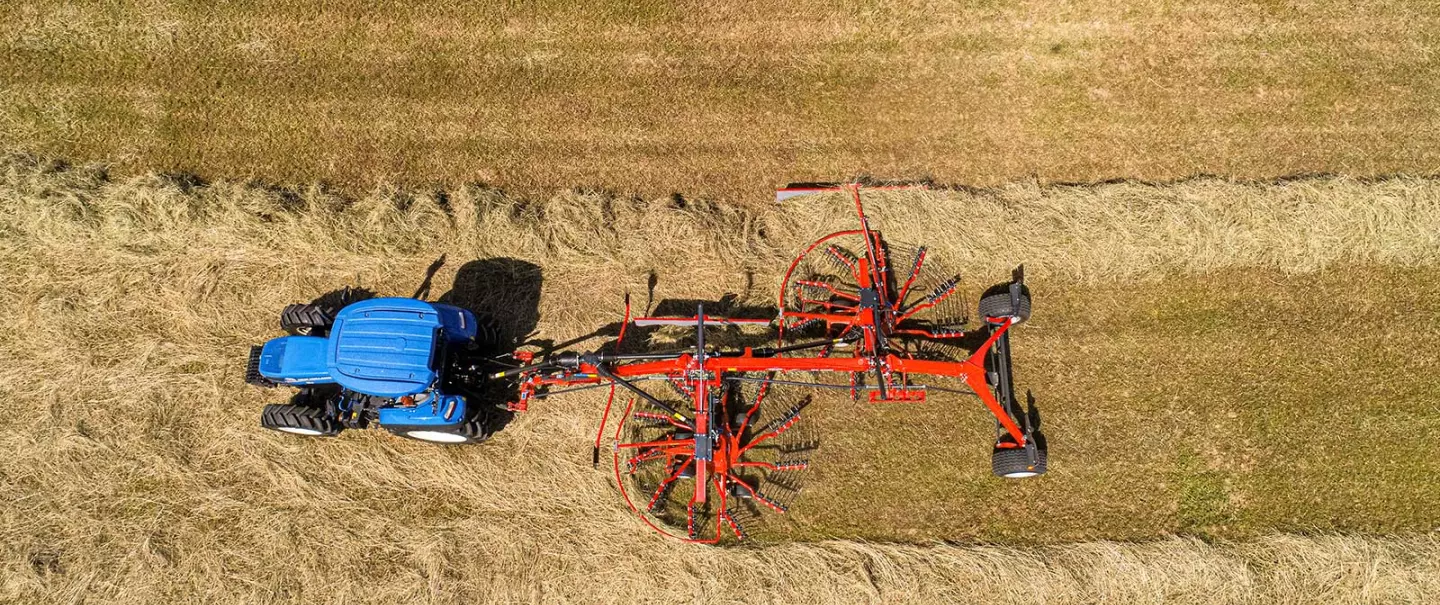 Les giro-andaineurs double rotors GA 6930, GA 7530, GA 8030 et GA 8830 délivrent des andains latéraux. Ils andainent l'herbe sur une largeur de 6,30 m à 8,80 m. Ils sont préconisés pour une utilisation intensive grâce au carter MASTERDRIVE GIII
