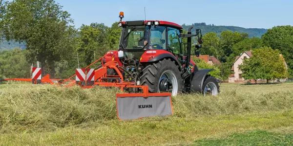La gamme KUHN s’agrandit avec les GA 3901, GA 4201 et GA 4401, de largeurs de travail de 3,90, 4,20 et 4,40 m, La conception innovante du carter d’animation provoque la dépose à droite de l’andain : un bénéfice de confort non négligeable pour l’utilisateur.