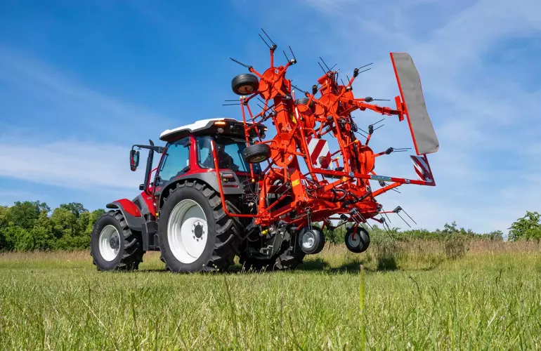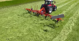Le nouveau girofaneur GF 8700, avec sa largeur de travail de 8,70 m, arrive en complément de l’actuel GF 8703. Sa conception offre un excellent rapport entre compacité d’une machine portée et largeur de travail importante tout en restant adaptée aux tracteurs de petite taille.