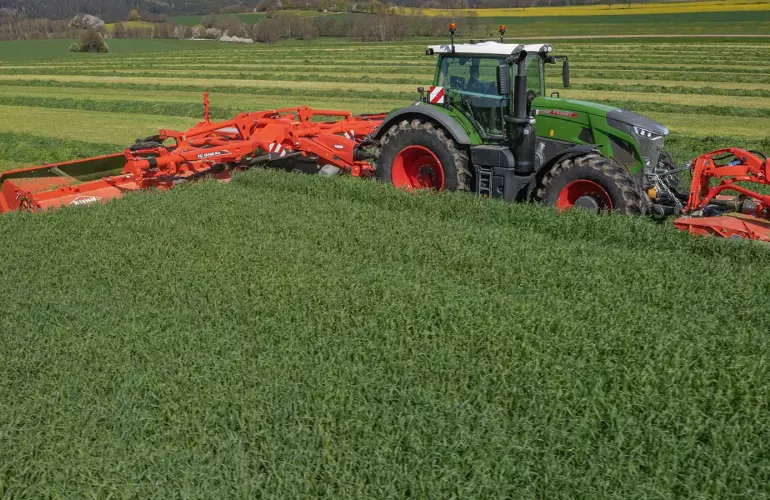 La faucheuse-conditionneuse FC 13460 RA offre un débit de chantier significativement supérieur aux combinaisons de fauche classiques.