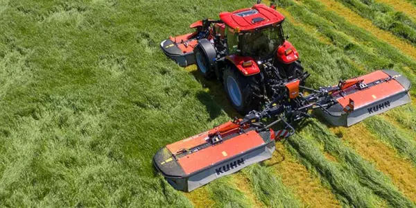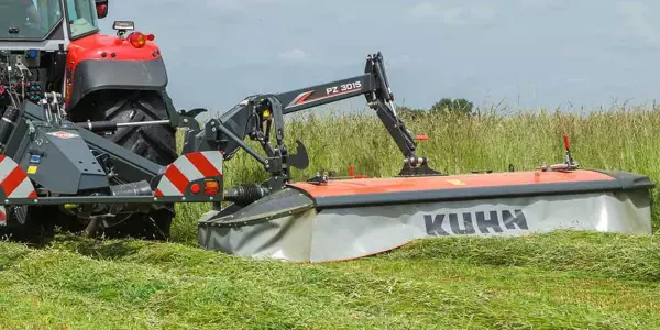 La combinaison de trois faucheuses KUHN PZ permet d'élever la productivité à un tout autre niveau. Avec une largeur de coupe allant jusqu'à 8,95 m, ces faucheuses vous offrent les cadences de travail les plus élevées. Les faucheuses triples KUHN PZ offrent une adaptation exceptionnelle au sol et vous offrent une coupe nette et régulière pour un fourrage de haute qualité.